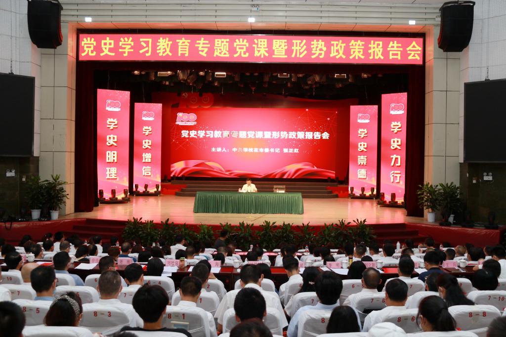 王斌在总结讲话中代表学校感谢张正红书记为大家带来的一场内容丰富、意义重大的精彩报告。指出,张正红书记报告立意高远、内涵丰富、深入浅出、生动感人,体现了对学校的关怀,对师生的殷切期望,对留攀就业创业学子的关爱他表示,学校党委以报告会为契机,深入学习贯彻省委十一届九次全会精神:观大势,明方向,全面扎实推进党史学习教育;学党史、强定力,积极组织广大教职员工和学生认真学习报告会的精神;知市情、壮豪情,把思想和行动统一到报告要求上来,立足工作和学习实际,进一步解放思想,更新观念;夯基础、显特色,奋力提升学校的办学育人水平,积极投身攀枝花市经济社会发展的伟大实践中去,为实现我市加快建成川西南、滇西北现代化区域中心城市的宏伟目标作出自己的贡献,以良好的精神状态和优异的工作成绩,为伟大的中国共产党的百年华诞献礼。