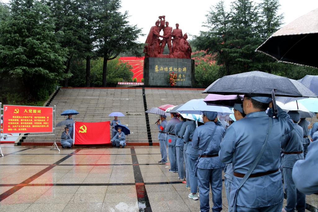 彝海结盟踌丰碑,风雨前行缅英烈。“我志愿加入中国共产党……”在党委副书记胥刚的领誓下,学员们面对党旗、面对彝海结盟纪念碑庄严宣誓,字句铿锵、神情激昂。碑前,敬献写有“江山就是人民 人民就是江山”的花篮,学员们庄严列队,静静伫立在风雨中,瞻仰纪念碑。再大的风雨,也阻挡不了学员们追寻先辈足迹,致敬革命先烈的热情和虔诚。