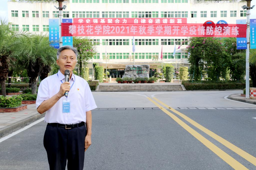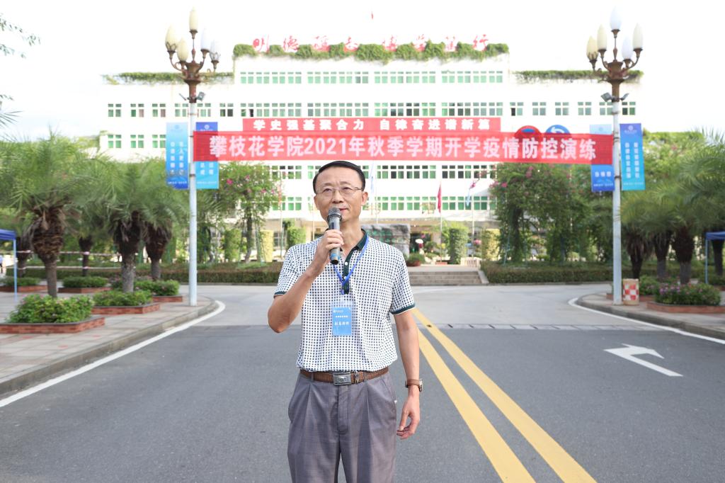 为贯彻落实省教育厅2021年秋季学期开学暨疫情防控工作有关要求,确保学校安全、有序开学,9月1日上午,学校举行了2021年秋季学期开学疫情防控演练,学校疫情防控领导小组成员单位负责人、各二级学院分管学生工作领导、学生科科长、辅导员,学生处、团委、后管处相关人员100余人参加演练。市、区疾控中心相关负责人全程参与,并予以指导。党委副书记、校长王曙光任演练总指挥,副校长朱波强任副总指挥。