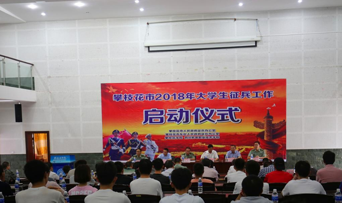 4月18日,攀枝花市2018年大学生应征入伍启动仪式在我校学术报告厅举行,攀枝花军分区副司令员张德勇、攀枝花学院副校长石维富、四川机电职业技术学院副院长袁学良等领导出席启动仪式。