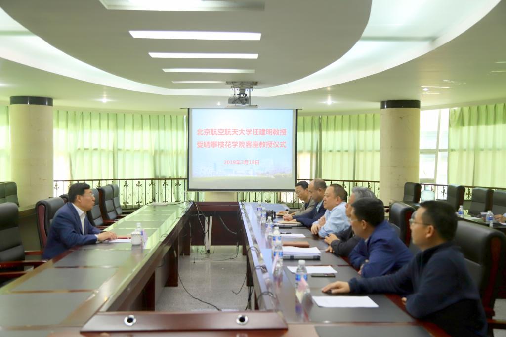肖立军为任建明教授颁发聘书并讲话。他介绍了攀枝花纪检监察学院成立以来的各项工作开展情况,指出学院目前在工作经验、师资力量、建设平台等方面的不足,对任建明教授给予学校的支持表示感谢。他希望,在任教授指导下,攀枝花纪检监察学院在学科建设、科学研究和人才培养等方面有新的突破和成绩。