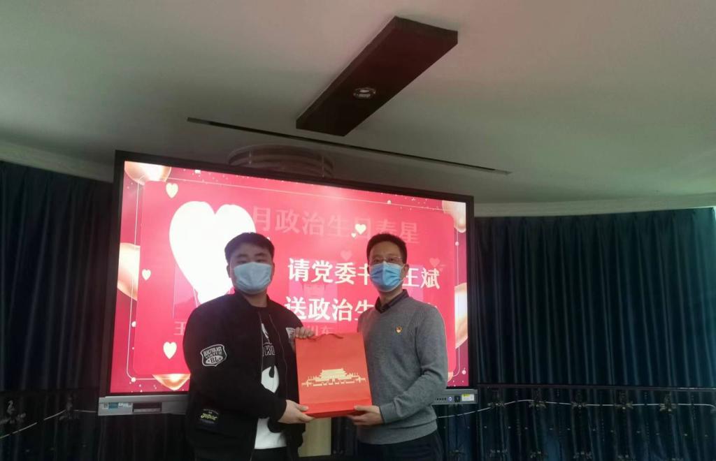 开展一次政治献礼。大学生共青团员学生代表为支部党员带来了政治生日献礼,朗诵主题诗歌《铭初心·感党恩·誓自律》,“组织上入党,一生一次;思想上入党,一生一世”。