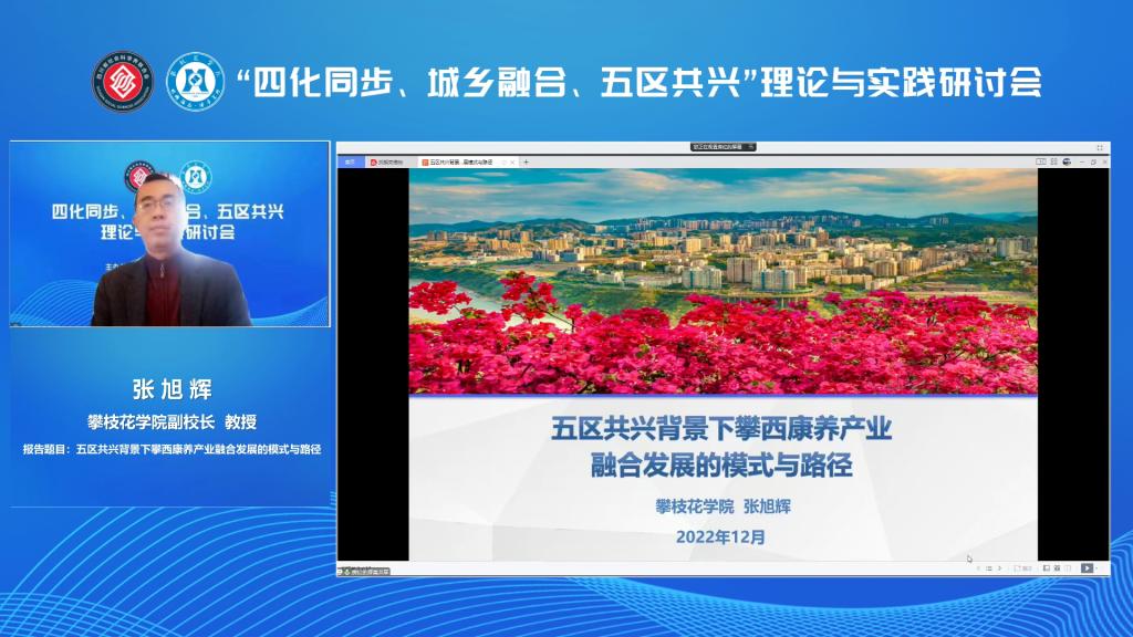 12月23日,由四川省社科联和攀枝花学院联合主办、攀枝花学院经济与管理学院承办的“四化同步、城乡融合、五区共兴”理论与实践研讨会在攀枝花学院召开。来自全省各市州社科联、研究机构的专家学者和来自西南财经大学、四川大学、四川外国语大学、成都理工大学、西华师范大学、四川轻化工大学、宜宾学院、四川旅游学院、内江师范学院、西昌学院等省内二十多所高校的师生通过线上线下的方式参加了此次研讨会。大会由攀枝花学院副校长王兵主持。