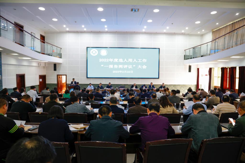 2月22日下午,我校2022年度选人用人工作“一报告两评议”会议在图书馆学术报告厅召开。校党委书记王斌主持会议。学校领导班子成员,处级领导干部,职代会、教代会负责人,在校的省、市党代表、人大代表、政协委员,民主党派在校负责人,正高级专业技术职务人员代表共计144人参加了测评大会。