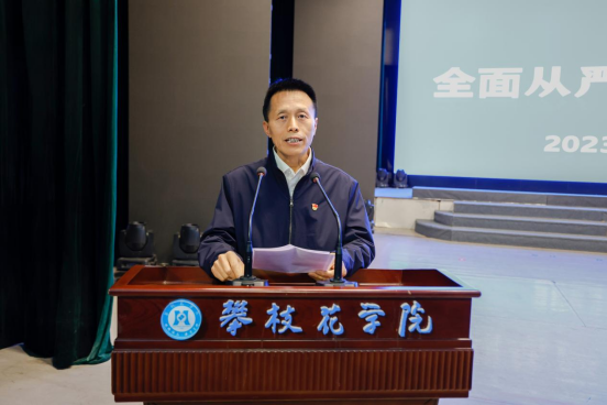 3月1日下午,我校在会堂召开2023年全面从严治党工作会。全体在校校领导、校党委委员、纪委委员,全体中层干部,二级纪委书记、委员,直属党组织纪检委员,党政办、组织部、宣传部、人事处、后管处、资管处、计财处、招就处、科研处、继续教育学院、资产经营公司、附属医院科级干部,安信物业、驾校主要负责人及纪委机关全体人员参加会议。会议由校党委副书记、校长王曙光主持。