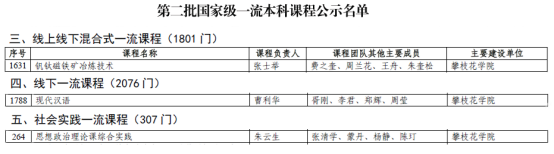 近日,教育部公示了第二批国家级一流本科课程认定结果,我校共有3门课程入选。由张士举负责的《钒钛磁铁矿冶炼技术》、曹利华负责的《现代汉语》、朱云生负责的《思想政治理论课综合实践》获批第二批国家级一流本科课程。