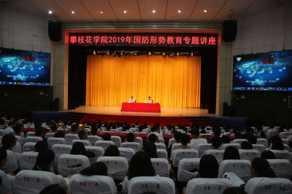 为帮助广大青年学子了解我国当前安全形势,树立正确的国防意识,增强国防观念,515日下午, 攀枝花军分区司令员王庆吉大校应邀在我校学生会堂举办2019年国防形势教育专题讲座。副校长刘立新主持讲座并总结讲话。