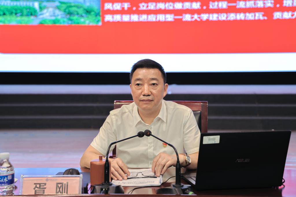 胥刚紧紧围绕深入理解习近平新时代中国特色社会主义思想和深刻认识习近平总书记教育重要论述的科学内涵和重大意义,紧密结合主题教育的总要求和目标任务,着眼学校事业发展实际,全面分析和系统阐释了如何在铸魂增智、正风促干中奋力推进学校应用型一流大学建设。