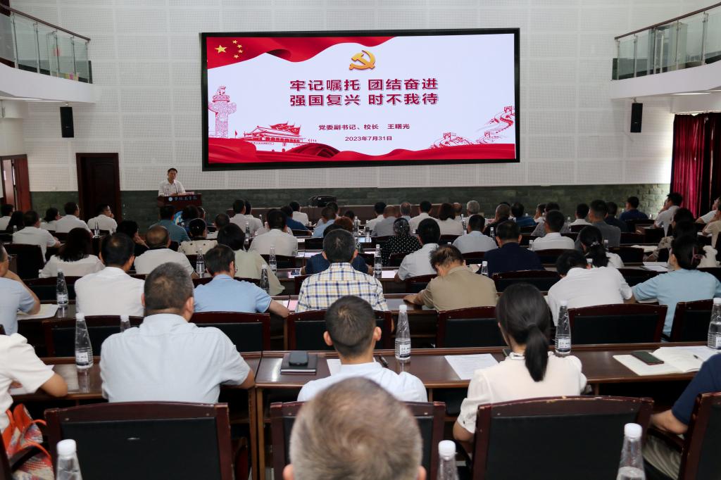 7月31日下午,党委副书记、校长王曙光以《牢记嘱托 团结奋进强国复兴 时不我待》为题讲授主题教育专题党课。省委主题教育第二十三巡回指导组组长刘青、组员张鸿飞列席指导。全体校领导,全校中层干部,土建学院和审计处教工党员代表共120余人参加专题党课学习。