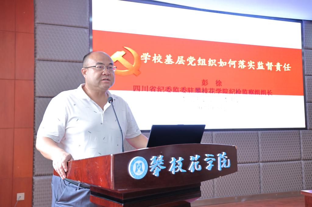 省纪委监委驻攀枝花学院纪检监察组组长,党委副书记、纪委书记彭徐围绕学校各级如何落实监督责任发言他指出,监督是最好的保护,从严是最大的爱护,要明确党内监督的主要任务、主要内容、工作方式,完善党内监督体系、落实落细各级党组织的监督责任、保障党员的监督权利,严肃党内政治生活,全面从严治党。