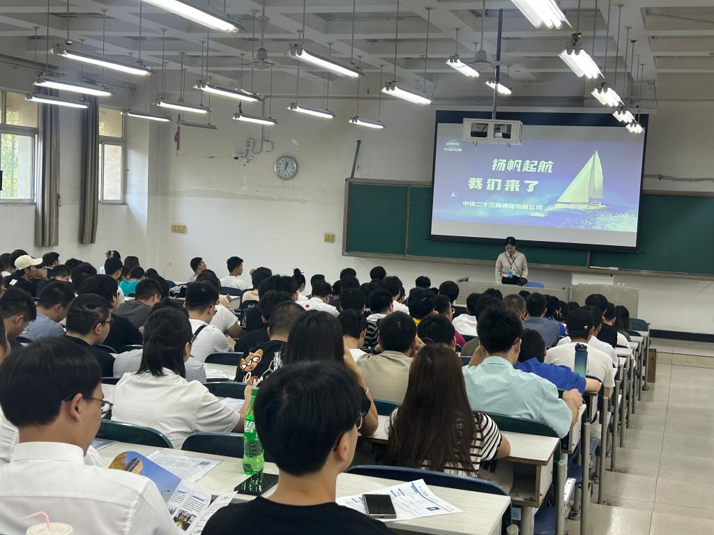 会后,中铁二十三局校园招聘组在二教2-1教室进行了专场招聘宣讲,我校近300名应届毕业生参加宣讲。