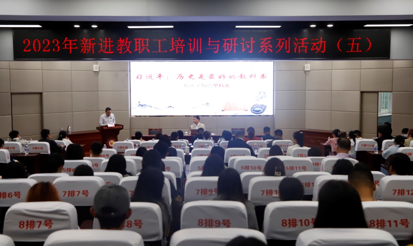 10月11日下午,市人大常委会主任、党组书记黄正富应邀到我校作专题讲座。校党委书记胥刚主持并总结讲话。近3年新进教职工、45岁以下副县级以上干部、文学院和法学院学生代表近200人聆听讲座。