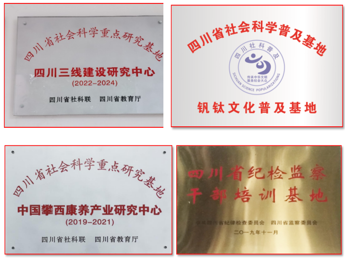 强化区域特色文化建设。紧密结合学校办学特色定位,以传统文化、革命文化、社会主义先进文化等为底蕴,融合钒钛文化、康养文化、三线文化、廉政文化的区域特色文化日益彰显,康养文化研究、钒钛文化普及、廉政文化教育、三线文化传承“四大基地”和“大学生思想政治教育综合实践教育基地”、“廉洁文化馆”、“清风苑”建设不断加强,文化育人功能持续提升。钒钛文化普及基地在省级社科基地评估中获评优秀;《三线精神深度融入育人体系,培养扎根基层、服务西部、务实创新应用型人才》荣获四川省高等教育教学成果特等奖,“四川三线建设研究中心”被认定为省重点研究基地,《三线建设历史与文化》课程成为国内开放共享课程并获评为省级思政精品项目、国家社科基金课题,三线精神育人入选教育部高校思想政治工作精品项目;《打造跨界融合共建的纪检监察教研一体化平台》获第二届“中国廉洁创新奖”,《做人如砚心高洁 风清气正自知廉》荣获2023年四川省第二届“510”廉洁文化宣传月思政微课大赛一等奖;康养学院荣获“全国巾帼文明岗”称号。