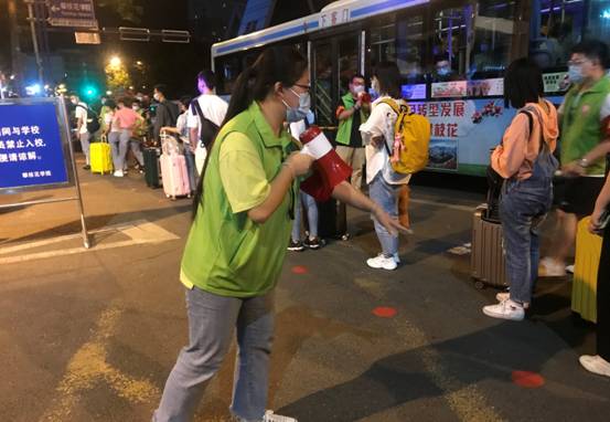 宿管阿姨为返校学生温馨服务