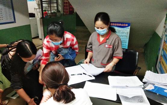 工作人员和志愿者核验返校学生资料