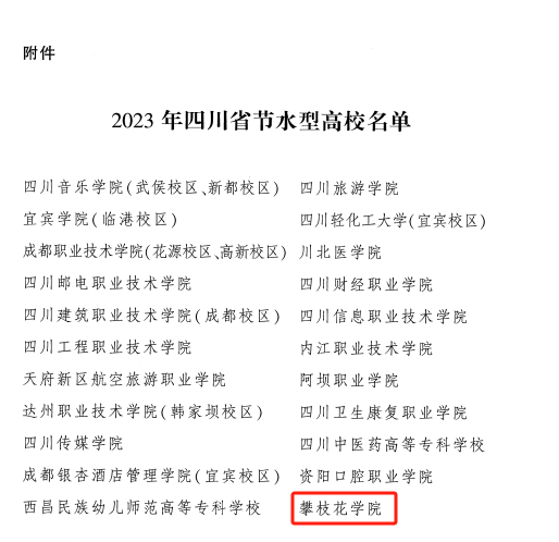 近日,四川省水利厅、四川省教育厅、四川省机关事务管理局联合印发了《关于公布2023年节水型学校名单的通知》。我校顺利通过了2023年度节水型高校复核和验收,达到《节水型高校评价标准》,被授予“四川省节水型高校”称号。