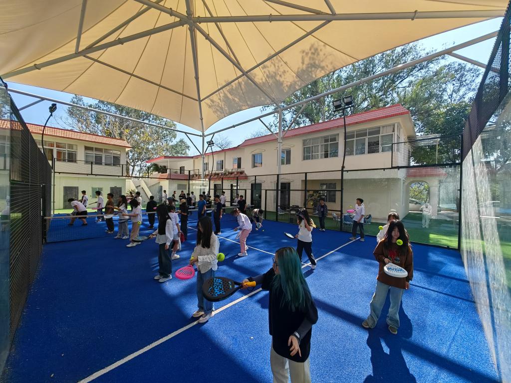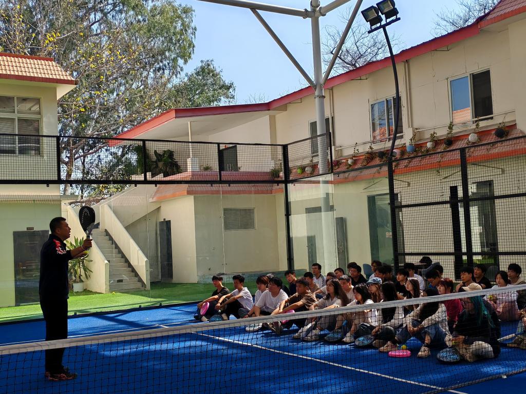 通过实地调研和精心筹备,体育部本学期共开设了4个板式网球教学班,吸引了174名同学热情参与。在享受公园提供的宜人环境的同时,同学们能安全、高效地学习并掌握板式网球技能。