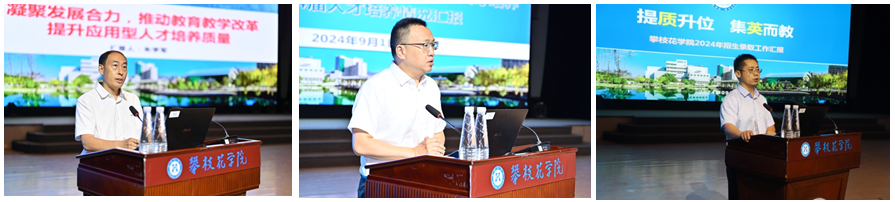 会上,生化学院以“凝聚发展合力 推动教育教学改革 提升应用型人才培养质量”为题,经管学院以“落实立德树人根本任务抓实应用型人才培养质量”为题,围绕人才培养工作作交流发言;招生就业处以“提质升位 集英而教”为题分析报告了2024年招生录取工作。