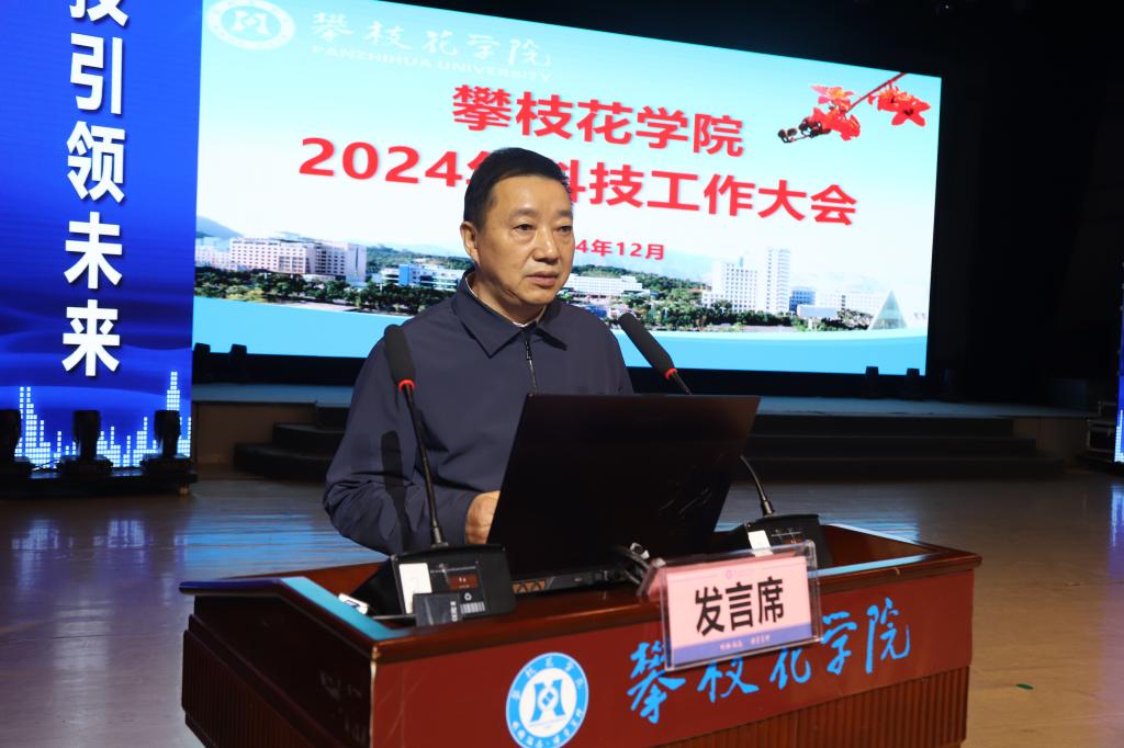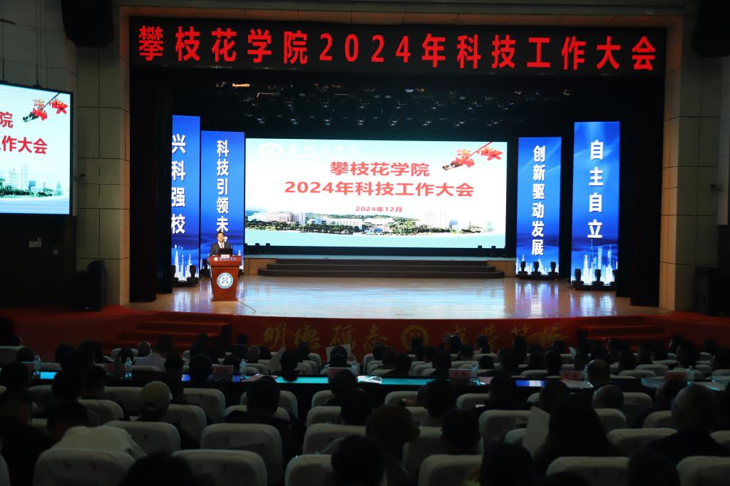 12月30日下午,我校在阳光会堂召开2024年科技工作大会。在校校领导,攀枝花市老科协会长赵忠义,攀枝花市科技局相关负责人,学校全体中层干部、高层次人才教师代表参加会议。党委书记胥刚出席会议并讲话。会议由党委副书记、校长李兴贵主持。