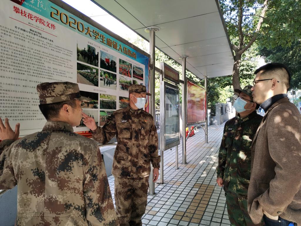 石维富代表学校对黄育松一行的到来表示欢迎,对攀枝花军分区给予我校征兵工作的支持表示感谢。他表示,近年来,我校以习近平强军思想为指导,不断加强国防教育,扎实有效推进大学生应征入伍工作。下一步学校将继续加大宣传力度,精准动员,激励更多的学生投身军营,报效国家。