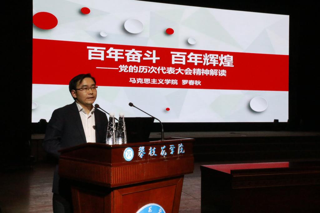 读书班学习会上,学校马克思主义学院党史专家以《百年奋斗百年辉煌》为题为与会人员作了党史专题讲座。讲座围绕“开天辟地、坚守红船初心,艰辛探索、铸就辉煌历程,开拓创新、成就改革之路,砥砺前行、谱写壮丽诗篇,深刻启示、引领前行之路”五个方面阐述了中国共产党一大到十九大的伟大成就,通过学习党领导人民站起来、富起来、强起来的伟大历程,引导大家坚定马克思主义、共产主义、社会主义的信仰信念,不断增强“四个意识”,坚定“四个自信”, 做到“两个维护”。