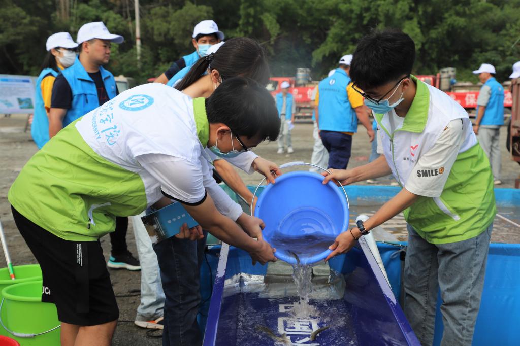 学生志愿者参加保护长江中上游生态环境——珍稀鱼类放养活动