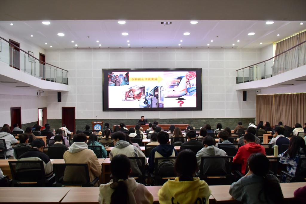 11月20日上午,法学院在博雅厅举行2025年“同心讲堂”大学生创新精神专题讲座。讲座由民建会员、行政管理专业教师刘书生主讲,学院党委书记张琳、学生科科长刘沙、2023级辅导员王霞及全体2023级学生参加。