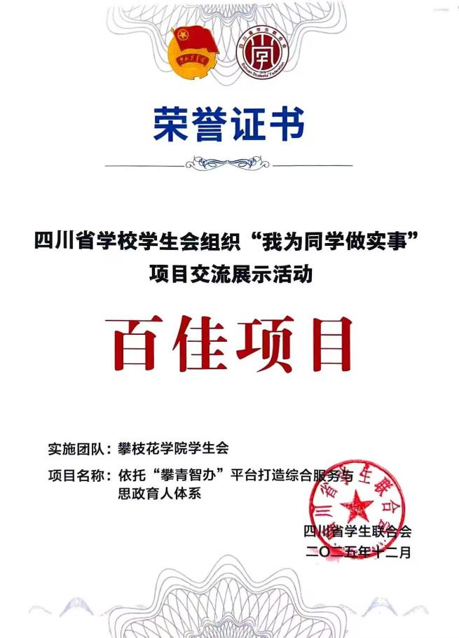 我校“依托‘攀青智办’平台打造综合服务与思政育人体系”获四川省学校学生会组织“我为同学做实事”百佳项目