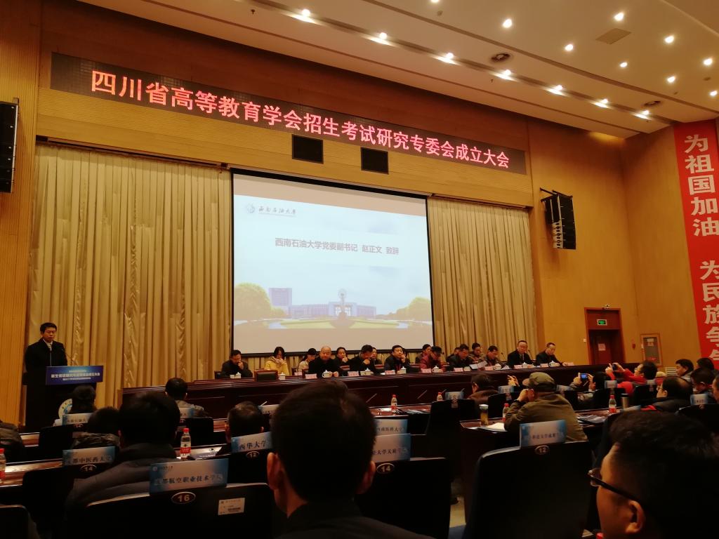 112日上午,四川省高等教育学会招生考试研究专业委员会成立大会暨2017年本科招生巡展总结年会在西南石油大学举行。省教育厅、教育考试院、省高教协会、全省40余所本科院校及部分高职院校代表参加大会。会上,四川农业大学当选为理事长单位,西南石油大学、四川师范大学当选为常务副理事长单位,攀枝花学院当选为副理事长单位。