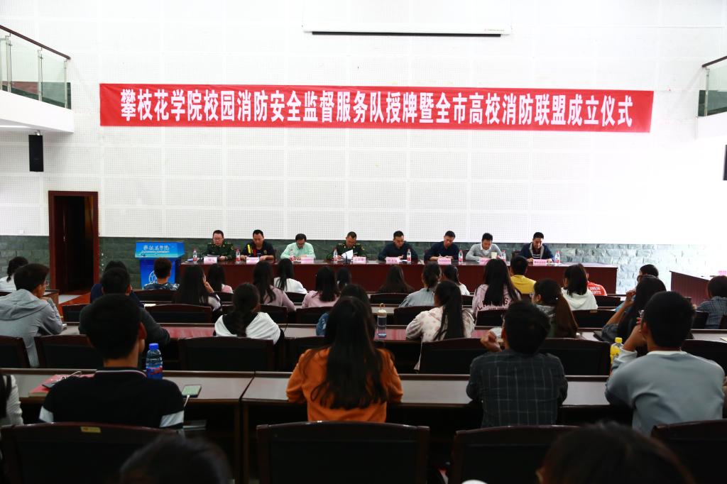四川机电职业技术学院、攀枝花技师学院、攀枝花市经贸旅游学校、攀枝花市建筑工程学校的代表和我校校园消防安全监督服务队成员参加了仪式。