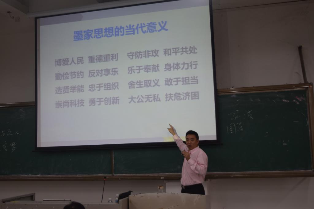 讲座上,胥刚解读了中华民族独特的精神及传统文化主要以墨子及其思想为中心讲解了墨家与儒家、法家及道家的异同,总结了墨、法家思想的精华所在及在当代的意义。讲解过程中,他穿插了大量生活中的实例,深入浅出、旁征博引,详细解读了墨、法家的思想精华。